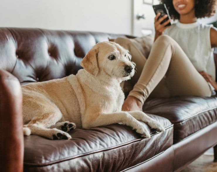 In short, choose fabrics that are easy to clean, repel the inevitable spills that come with having pets, and can withstand pawing and scratching. For example, you can pick from some of the following materials: