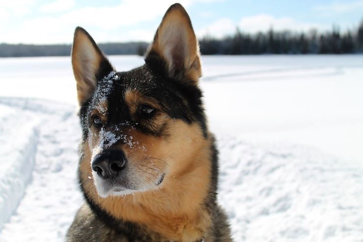German Shepherds have a double coat. The outer coat, which sheds all year round, is close and dense with a thick undercoat. The coat is accepted in two variants; medium and long. The German Shepherds are good in all weather, but I wouldn't leave it outside day after day. Below freezing isn't good for any dog, but make a proper shelter and they will be fine.