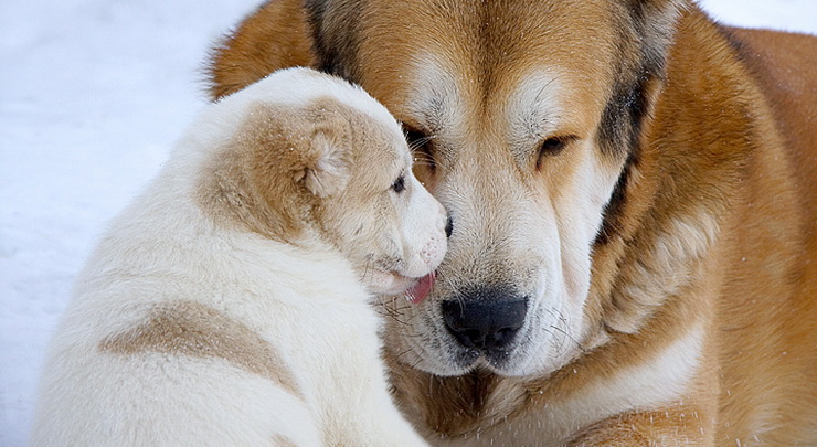 central asian ovcharka and puppy