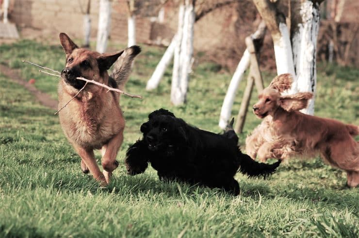 Cocker spaniel and GSD do not get along too well because both dogs want to be in charge. When walking either one of these two dogs on a leash, if they get too close to each other then there might be an argument that could result in them fighting.