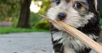 My 3-month-old Morkie is teething like crazy. How can I train him to stop biting and being aggressive?