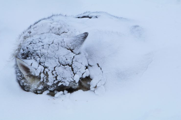The rounded tail is well furred and looks like a round brush. It has an important purpose in extreme cold or snowstorms. A Husky, when curled up to sleep in a Siberian swirl, will cover its nose with its tail for warmth and to preheat the air.