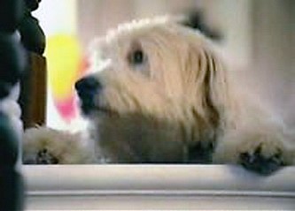 Finally heard back on the dog in the commercial. His name is Snowball and he's a mixed breed. His trainer said he doesn't know what breeds he goes back into as his mom and dad were mixed breeds also.