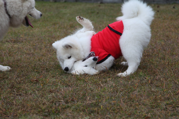 By the way, they are both girls my Samoyed and Golden Retriever if that matters for their size.