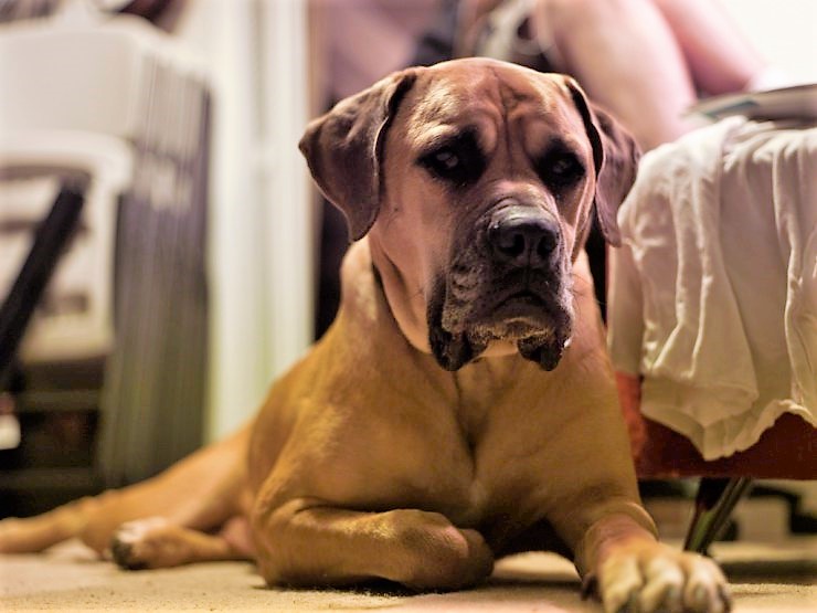 English Mastiffs are typically way, way more mellow than Boerboels (African Mastiffs). Most EMs require relatively little exercise; they need a good hour of exercise over the day, then they're couch potatoes indoors. Boerboels are more active working dogs. They require more stimulation and need to be worked considerably harder.